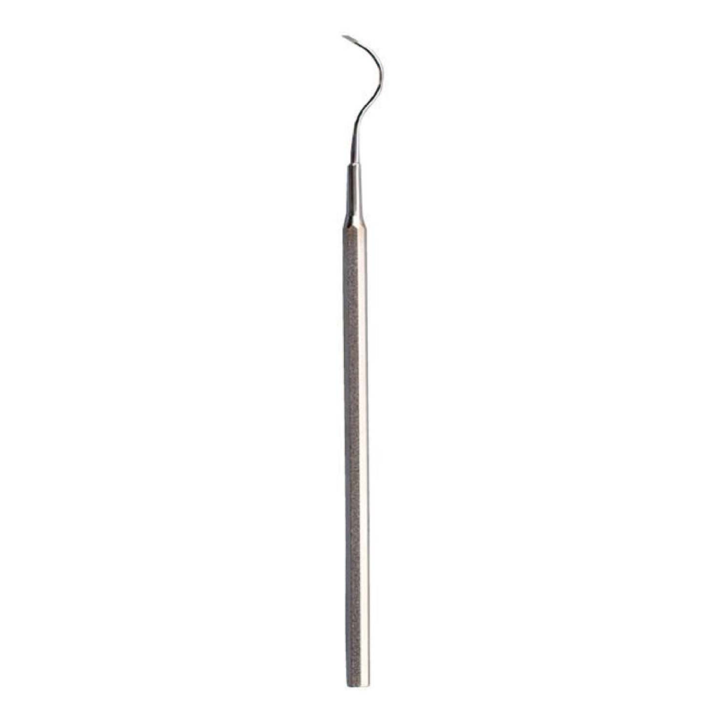 This is a dental calculus removal tool with a pointed, angular tip. It effectively removes tartar from uneven tooth surfaces and between teeth. The curved shape makes it easy to remove dirt from the back of your own teeth.
